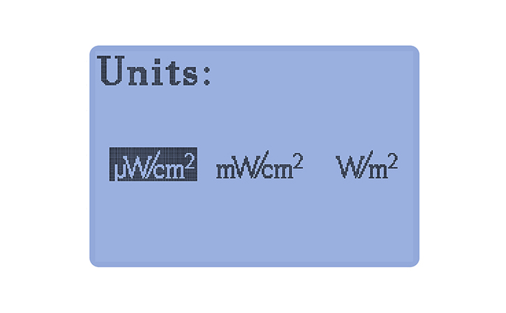 | 可選單位 | ??μW/cm2 (默認(rèn)),mW/cm2,W/m2 |