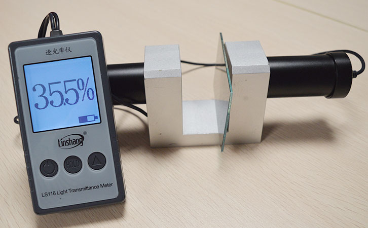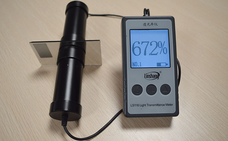 首先兩個(gè)探頭吸合,開機(jī)透光率顯示數(shù)據(jù)為100%后,兩個(gè)探頭夾著被測(cè)材料,對(duì)準(zhǔn)測(cè)量,顯示的數(shù)據(jù)就是被測(cè)材料透光率的數(shù)值。