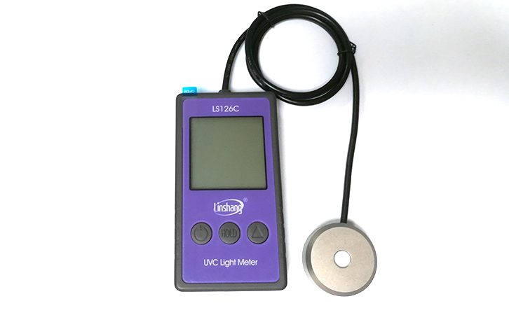 紫外線燈的強度檢測可以使用LS126C紫外線強度計。這是一款配備有1米掛鉤的儀器,掛鉤是按照國家規定長度制定的,使用的時候直接把儀器放在燈管的垂直中央下方。儀器有自動關機功能,10分鐘無人操作時,儀器自動關機。檢測的時候,人員離開,關上門之后再開燈,確保人員不會受到紫外線的傷害。