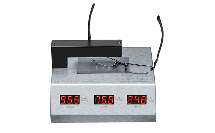 LS108眼鏡鏡片測試儀可以用來檢測眼鏡鏡片的藍光透過率,檢測防藍光眼鏡的藍光阻隔效果。